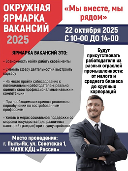 Приглашаем жителей и гостей города принять участие в окружной ярмарке трудоустройства «Мы вместе, мы рядом»!