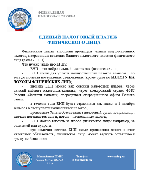 Федеральная налоговая служба информирует!